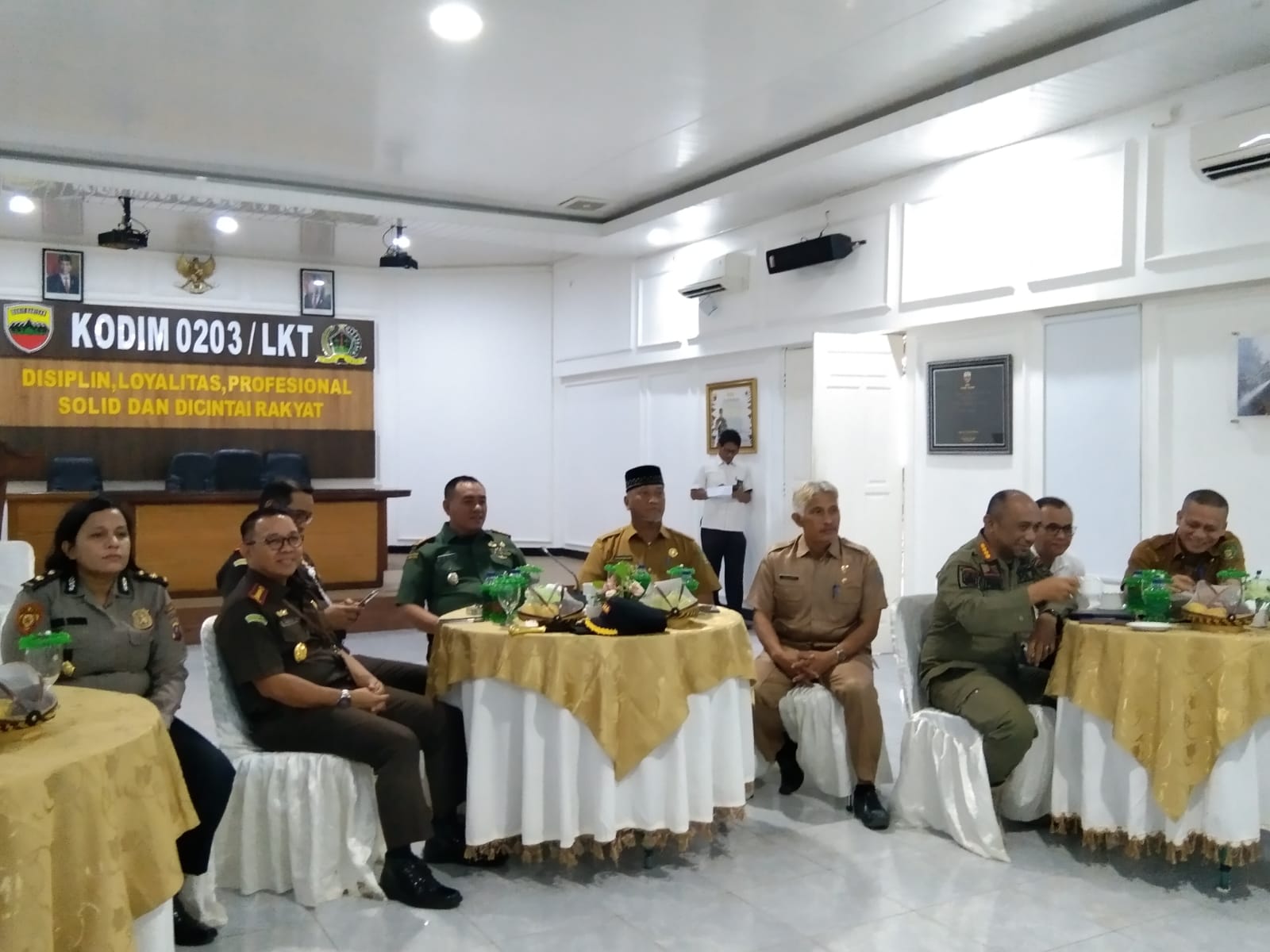 Langkat,- Plt Bupati Langkat H.Syah Afandin SH yang di wakilkan oleh Asisten Adm Ekbangsos H.Sukhyar Mulyamin,S.Sos,M.Si menghadiri Penyelenggaraan Komunikasi Sosial (Komsos) Dengan Aparat Pemerintah secara Online, bertempat di ruang Data Makodim 0203/LKT, Senin (22/1/2024).