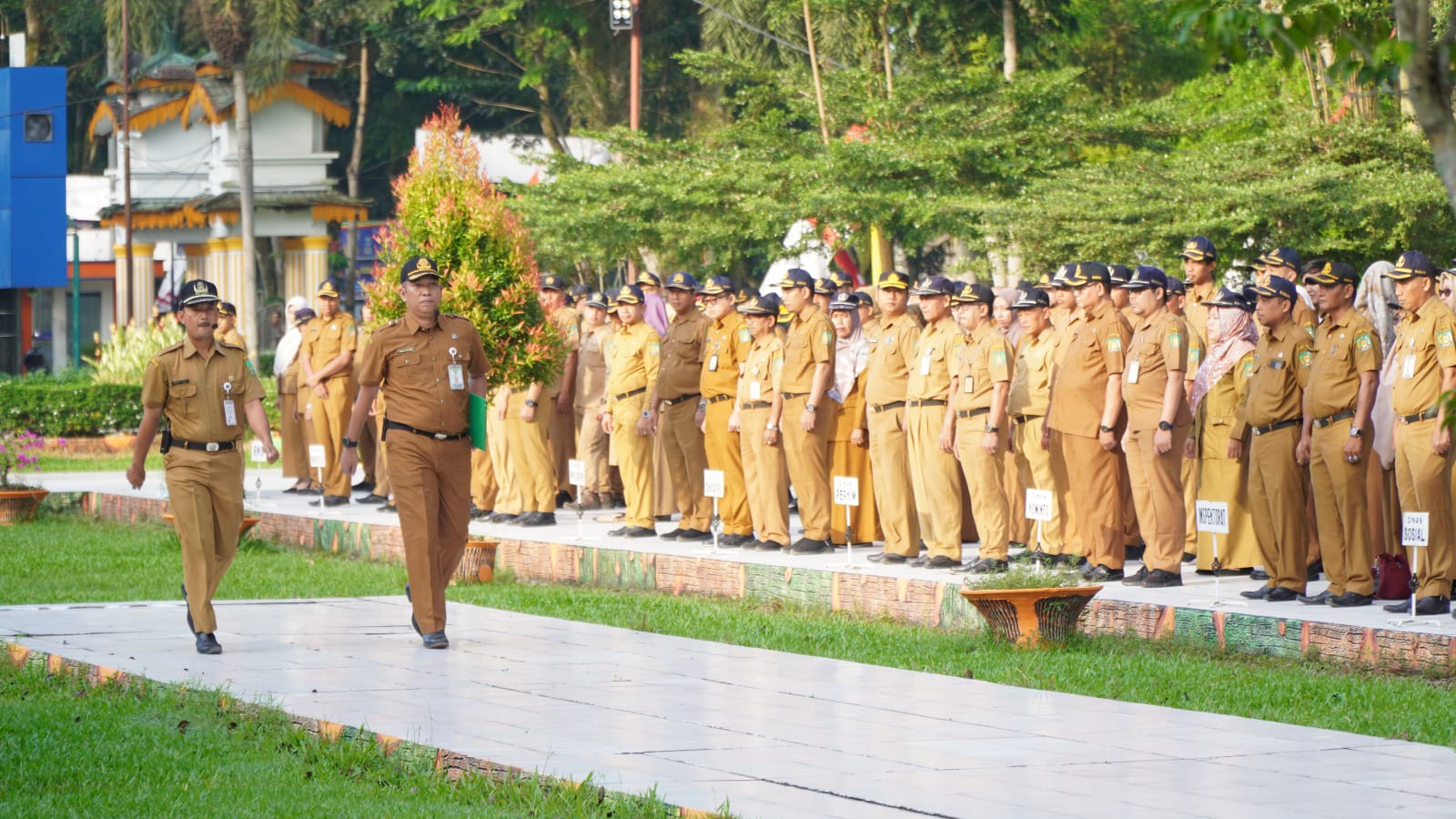 Langkat,- Plt.Bupati Langkat H.Syah Afandin SH diwakili Staf Ahli Bid. Pemerintahan, Hukum dan Politik Drs. H. Rudi Kinandung, M.AP menjadi pembina apel gabungan di lingkungan Pemerintah Kabupaten Langkat, di Halaman Kantor Bupati Langkat, 22 Januari 2024.