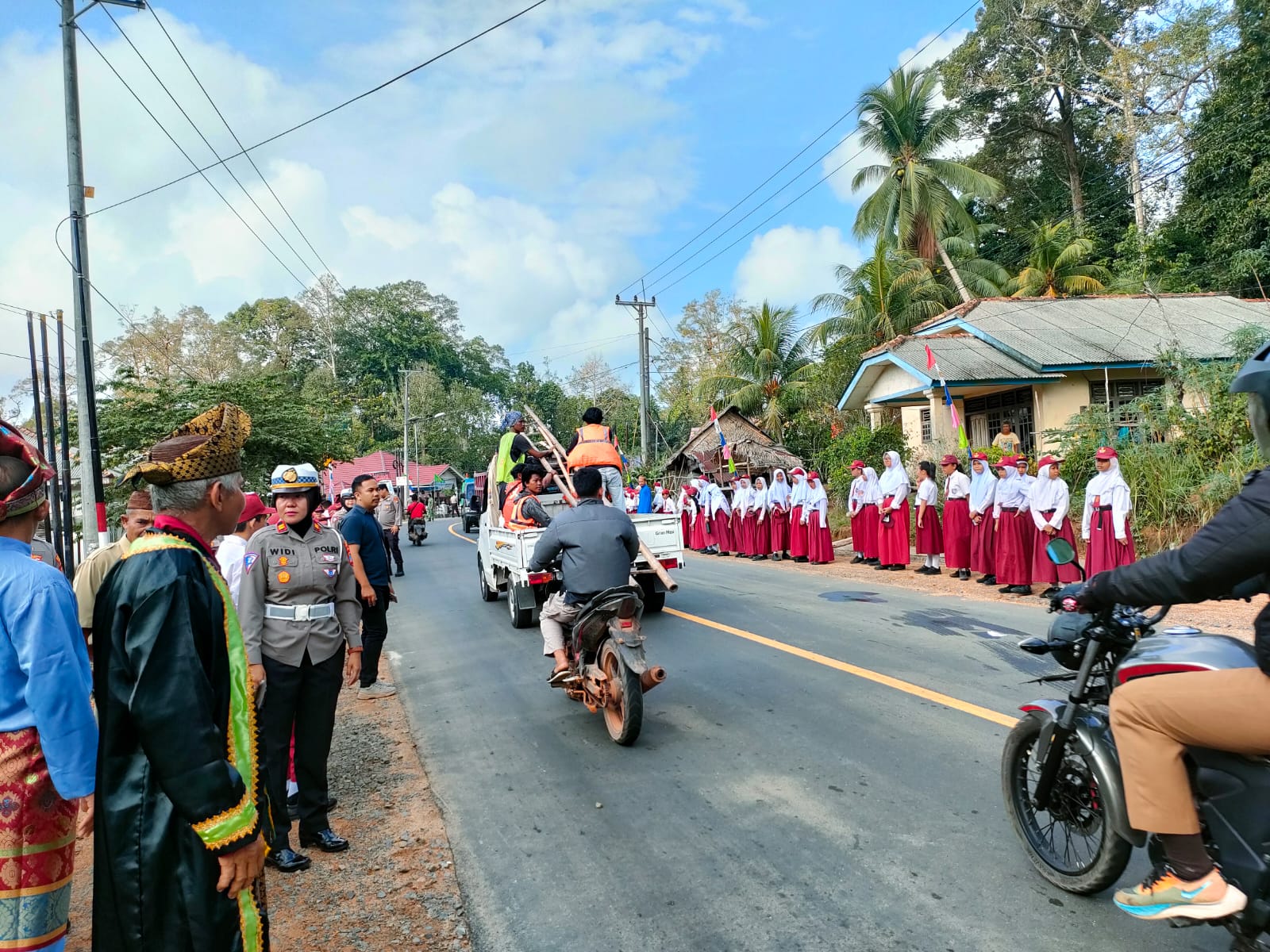 Kabag Ops Polres Bangka Barat Kompol Albert Tampubolon pimpin kegiatan pengamanan Ritual Adat Setana Jering Maulid Agung Di Setana Jering Amantubillah di desa Pelangas Kecamatan Simpang Teritip Kabupaten Bangka Barat. Senin (09/10/2023)