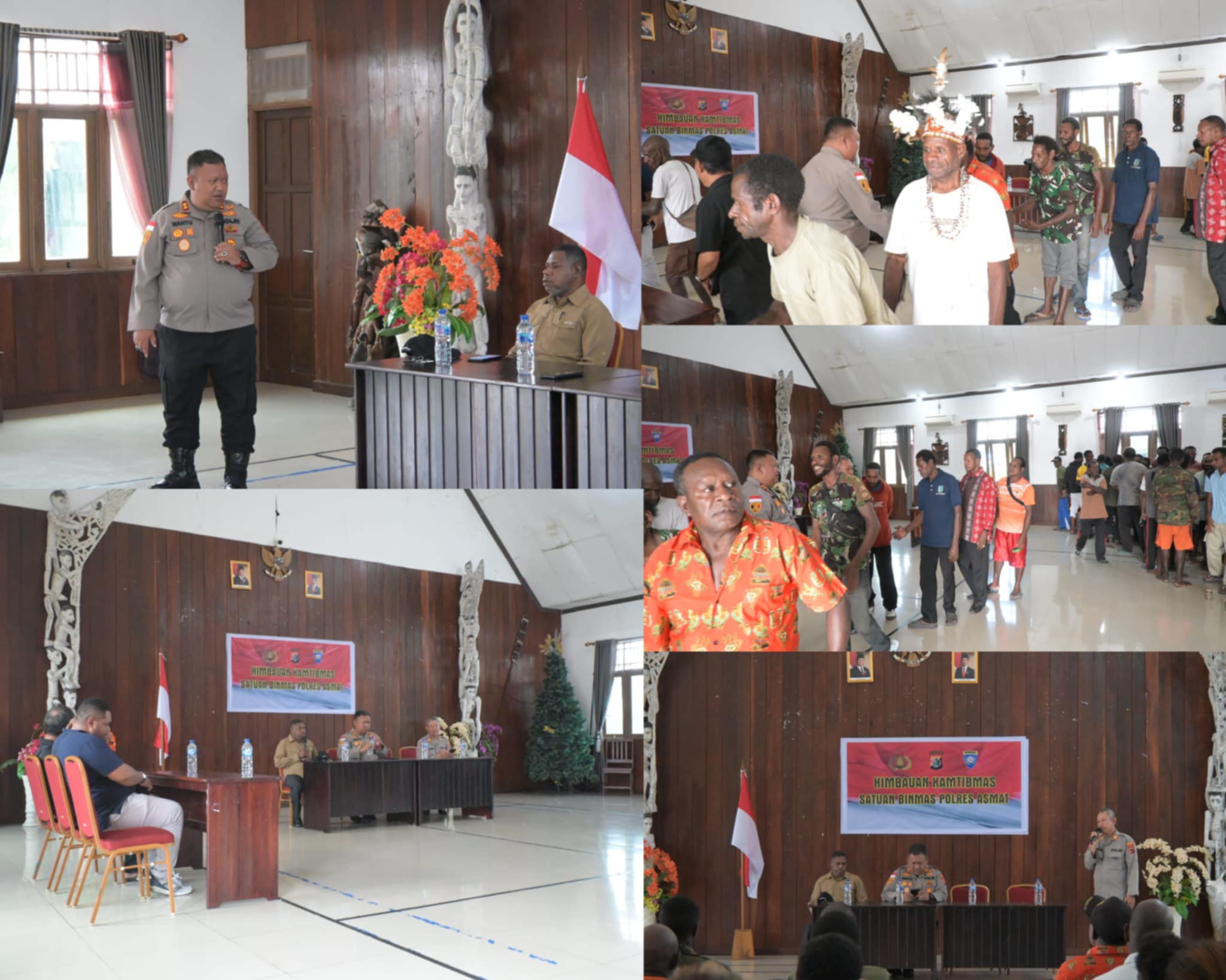 Asmat – Kapolres Asmat AKBP Wahyu Basuki, S.I.K., bersama Kepala Dinas PUPR Kabupaten Asmat Yesaya Airo, Laksanakan penyelesaian perkelahian antara Masyarakat Sawa Erma dan Masyarakat Simsagar, Bertempat Di Aula Wirapratama Polres Asmat, Kamis (10/07/2025).