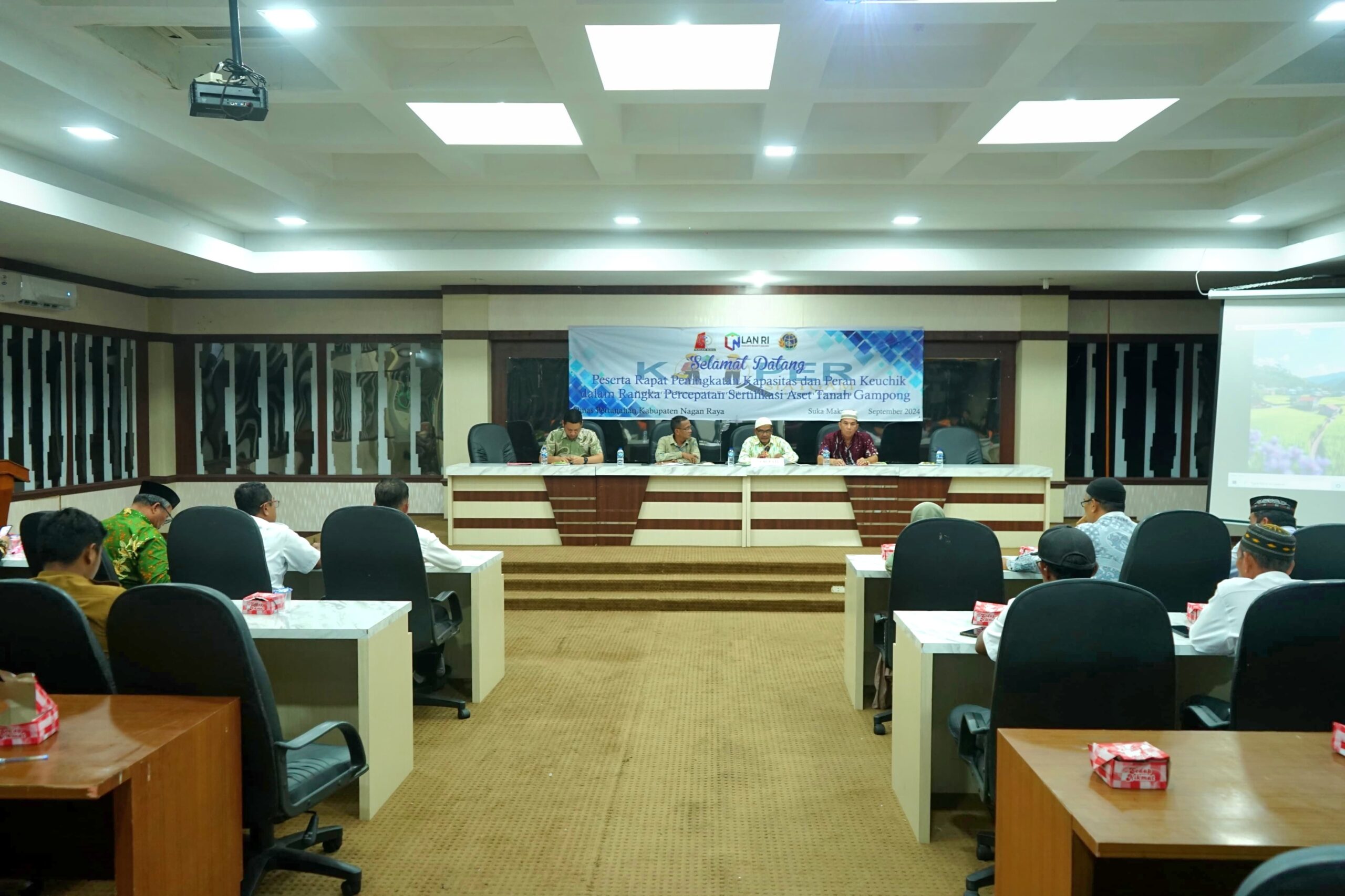 Kepala Dinas Pertanahan, Wahidin, dalam laporannya menjelaskan bahwa rapat ini merupakan bagian dari tahapan kolaborasi percepatan sertifikasi aset tanah gampong di Kabupaten Nagan Raya, yang dikoordinasikan oleh Dinas Pertanahan.