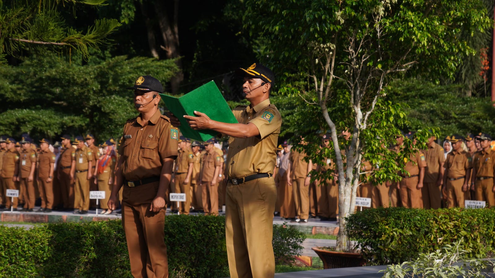 Langkat,- Pj.Bupati Langkat H.M.Faisal Hasrimy,AP,M.AP di wakili H.Amril.S.Sos,M.AP menjadi pembina apel gabungan di jajaran pemkab Langkat bertempat halaman Kantor Bupati Langkat, Senin (10/06/2024).