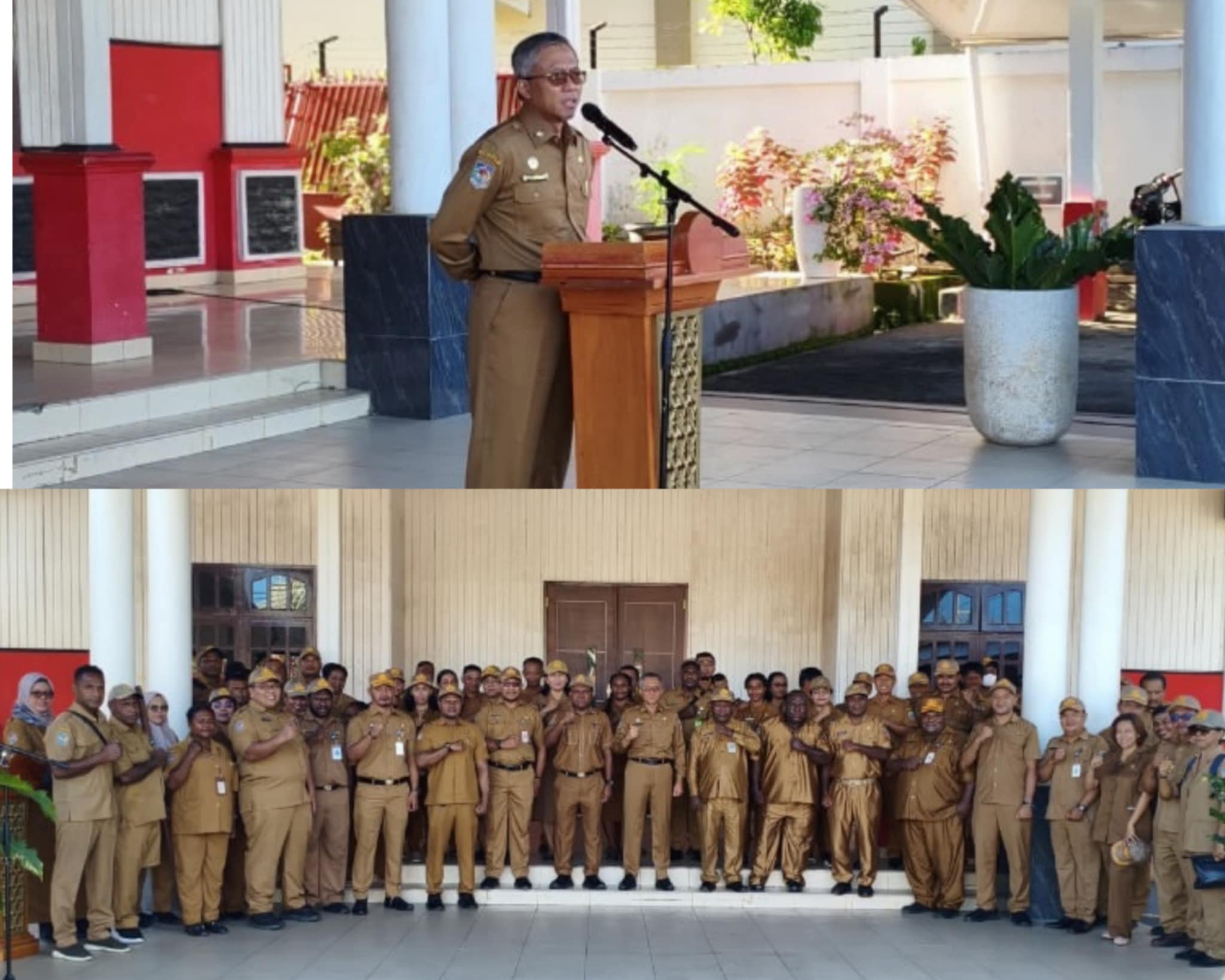 Nabire Papua Tengah-Plt Assisten II Setda Provinsi Papua Tengah, H. Tumiran, memimpin apel di lingkup Pemprov Papua Tengah, pada Senin, 16 Juni 2025.