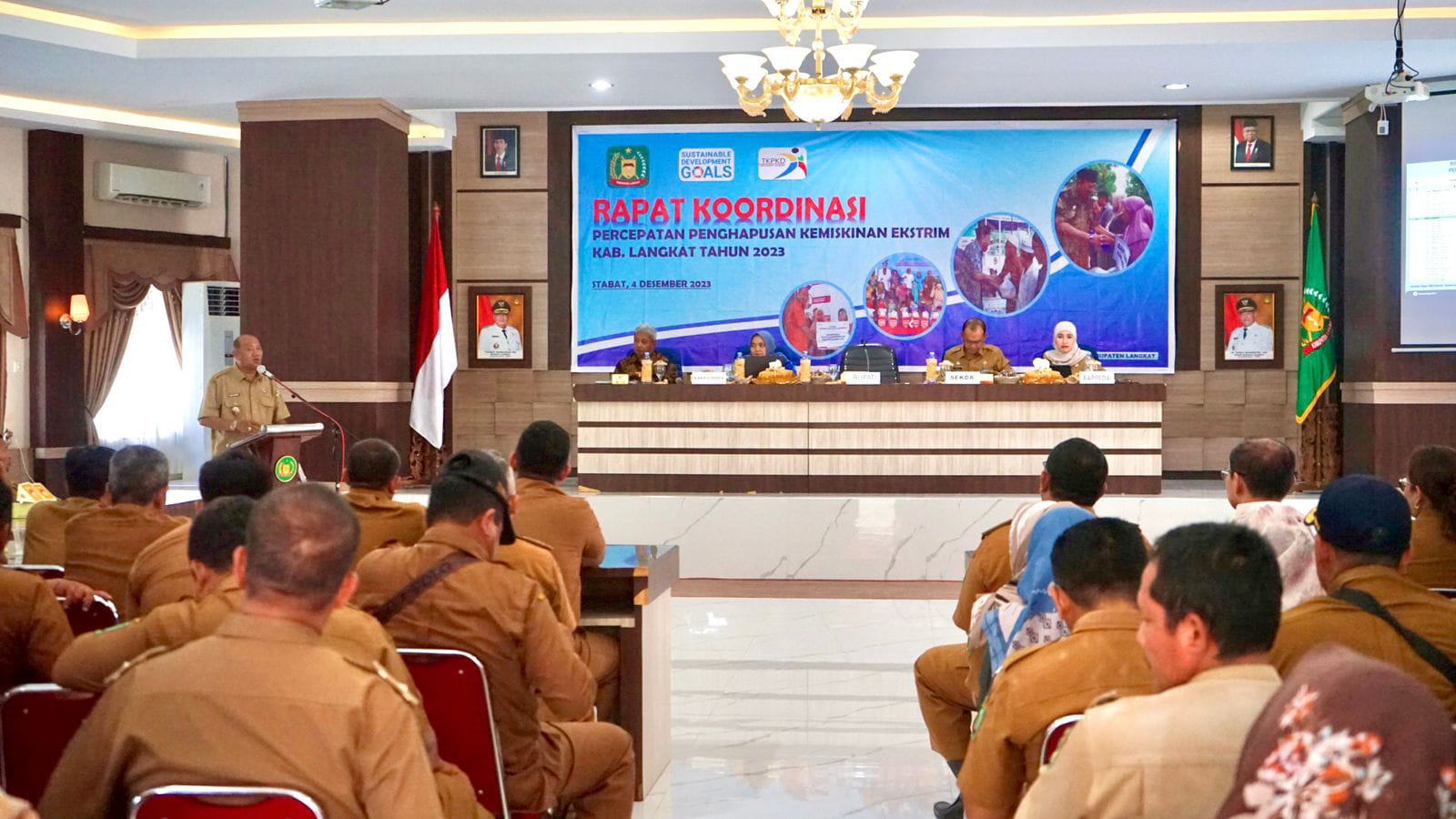 Langkat,- Plt Bupati Langkat H.Syah Afandin SH membuka rapat koordinasi percepatan penghapusan kemiskinan ekstrim, bertempat di ruang pola bawah kantor Bupati Langkat Senin 4 Desember 2023.