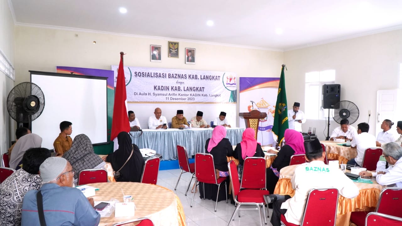 Langkat,- Plt Bupati Langkat H Syah Afandin, SH di wakili Asisten Pemerintahan dan Kesejahteraan Rakyat, Drs. H. Mulyono,M.Si membuka kegiatan sosialisasi BAZNAS, Infaq dengan Kadin Langkat, di Aula H. Syamsul Arifin Kantor Kadin Langkat, Senin (11/12/2023)