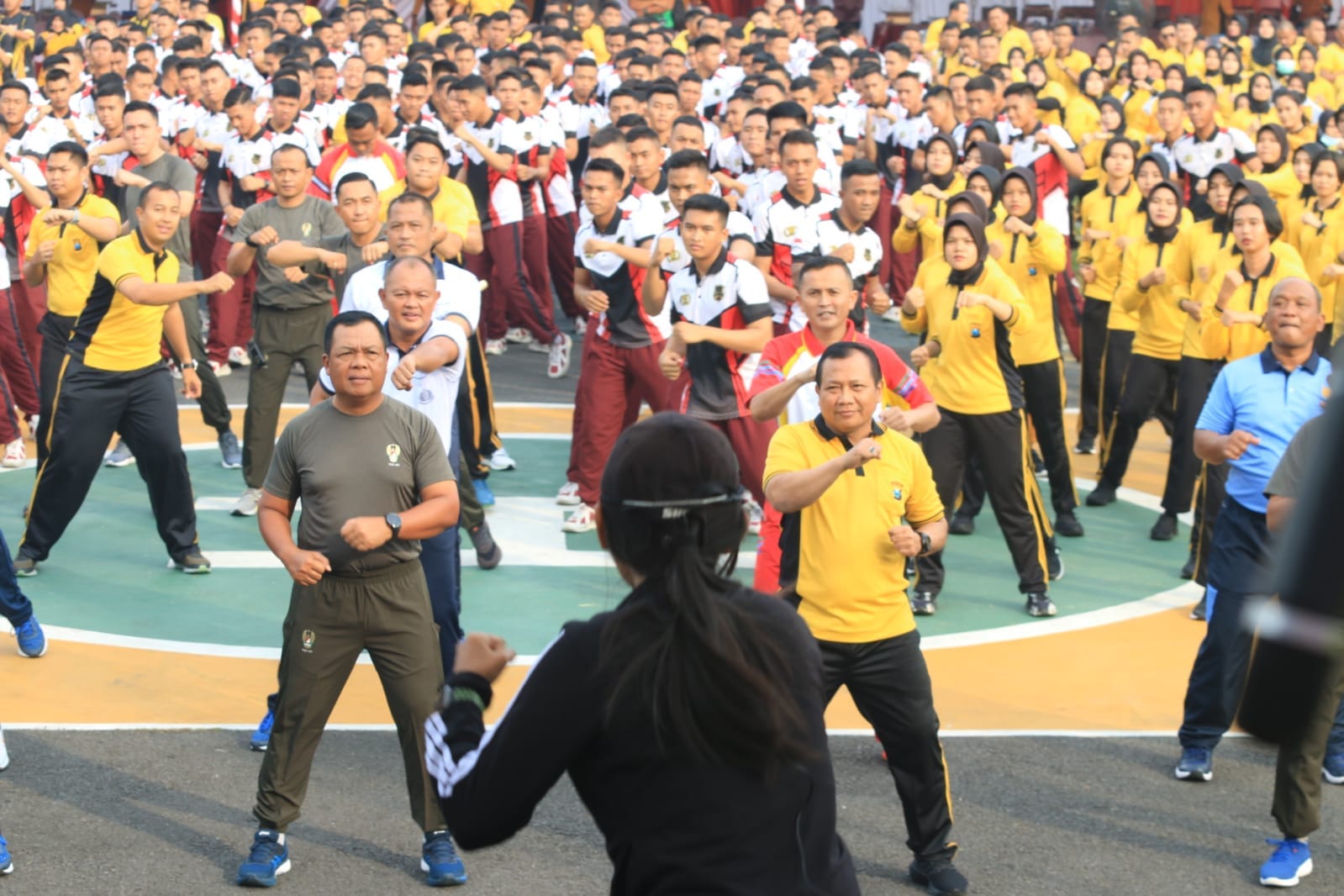 “Serentak hari ini kita melaksanakan kegiatan olahraga bersama TNI – Polri yang ada di Jawa Timur,”ujar Kombes Dirmanto.