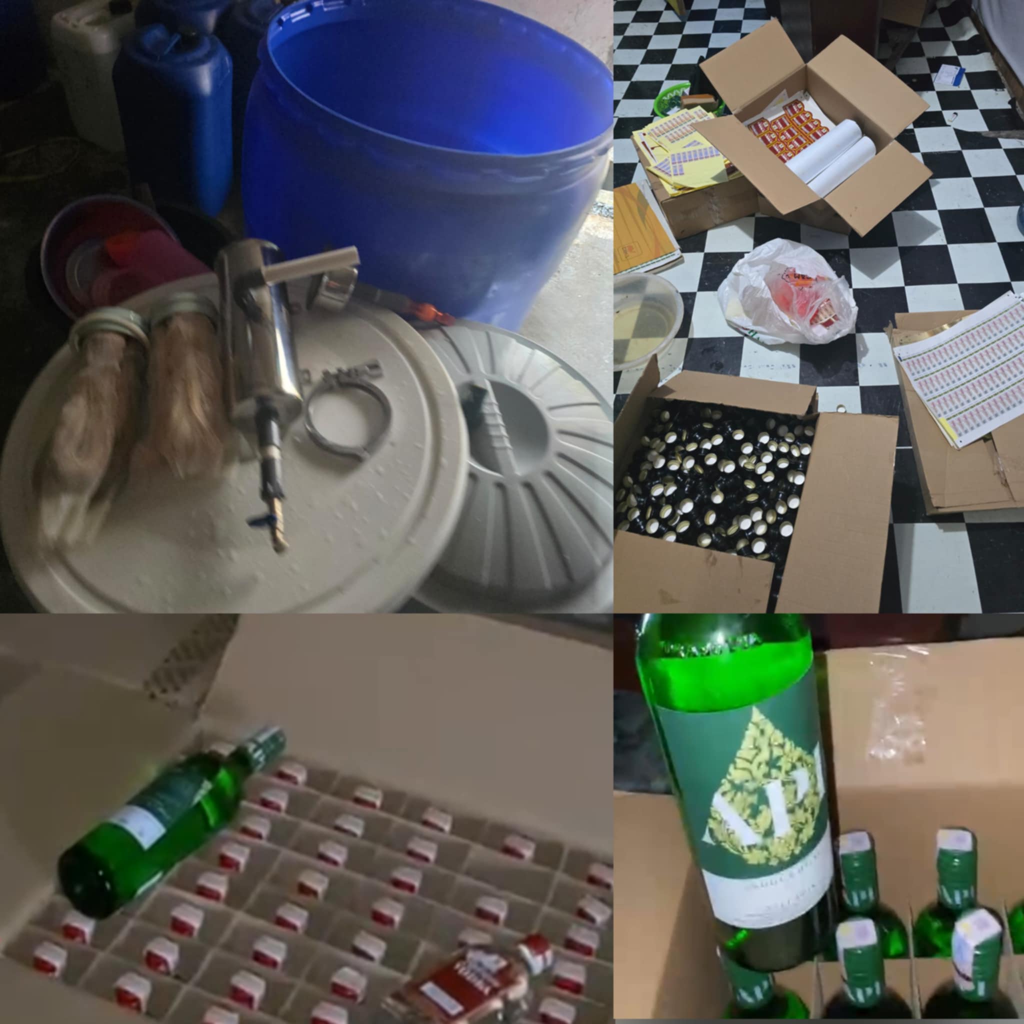 Dalam penggerebekan tersebut, petugas mengamankan dua orang pelaku yakni SLS (59) dan TG (45) beserta sejumlah barang bukti berupa ribuan botol minuman oplosan siap edar, mesin press penutup botol, bahan campuran kimia, pita cukai palsu, serta perlengkapan produksi lainnya.
