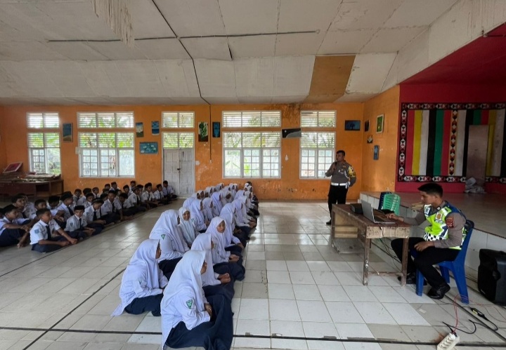 Subulussalam|Suaraindonesia.online – Satuan Lalulintas Polres Subulussalam menggelar kegiatan Police Goes To School berikan sosialisasi keamanan, keselamatan dan ketertiban, serta kelancaran dalam berlalulintas. Kegiatan tersebut berlangsung di SMP Negeri 1 Simpang Kiri Kota Subulussalam. Senin, 4 Maret 2024.