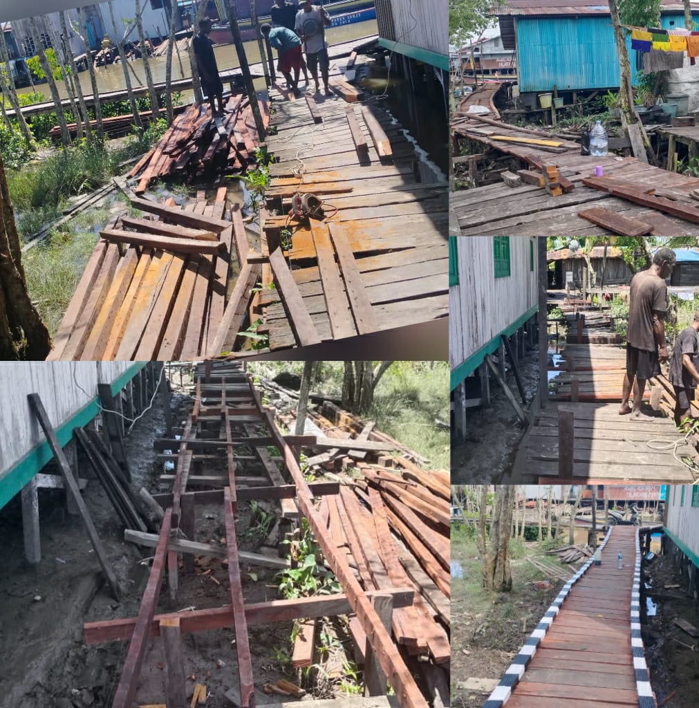 “Kami mengganti kayu yang rusak atau lapuk dengan kayu yang baru dan Memperkuat struktur jalan dengan menambahkan tiang-tiang penyangga,”Ungkap Ipda Agung Raka.