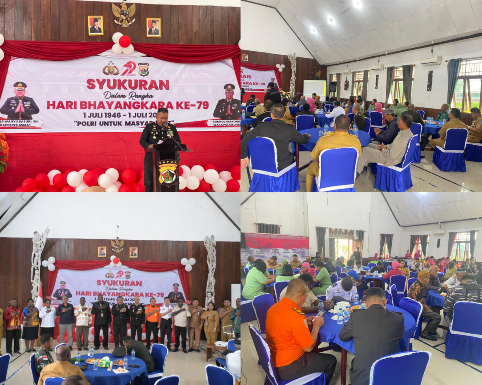 Asmat – Kapolres Asmat AKBP Wahyu Basuki, S.I.K., pimpin syukuran Hari Bhayangkara Ke-79, Bertempat Di Aula Wirapratama Polres Asmat, Selasa (01/07/2025).