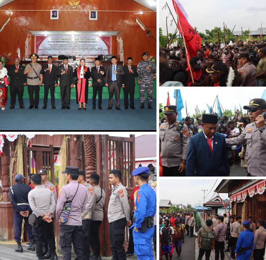 Agats – Polres Asmat melaksanakan pengamanan dalam rangka pelantikan anggota Dewan Perwakilan Rakyat Daerah (DRPD) Kabupaten Asmat yang berlangsung di Kantor DRPD Kabupaten Asmat, Jalan Zegward, Selasa (22/10/2024).