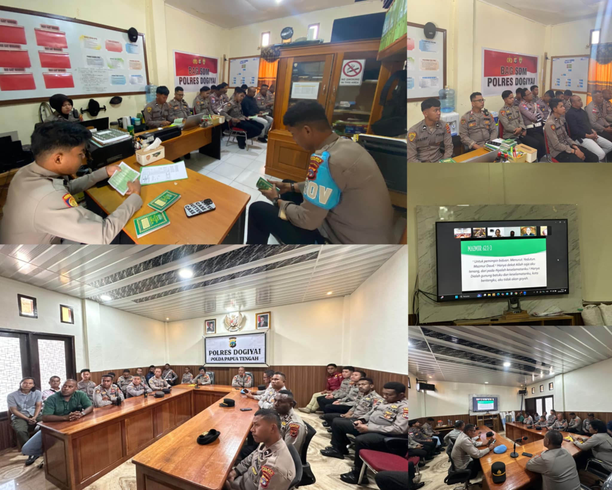 Kigamani — Kepolisian Resor Dogiyai melaksanakan kegiatan Bimbingan Rohani dan Mental (Binrohtal) secara virtual melalui aplikasi Zoom, Kamis (26/6/2025). Kegiatan ini merupakan bagian dari program pembinaan personel guna meningkatkan keimanan, ketakwaan, serta integritas anggota Polri dalam menjalankan tugas sehari-hari.