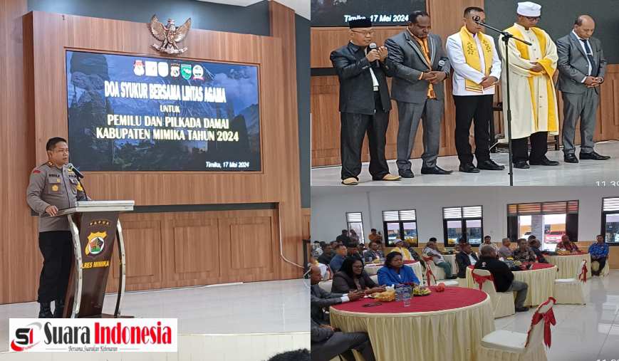 MIMIKA – Dalam rangka menyambut Pemilu dan Pilkada yang aman dan damai, Polres Mimika mengadakan acara syukur dan doa bersama lintas agama di Aula Mapolres Mimika pada Jumat (17/5/2024).