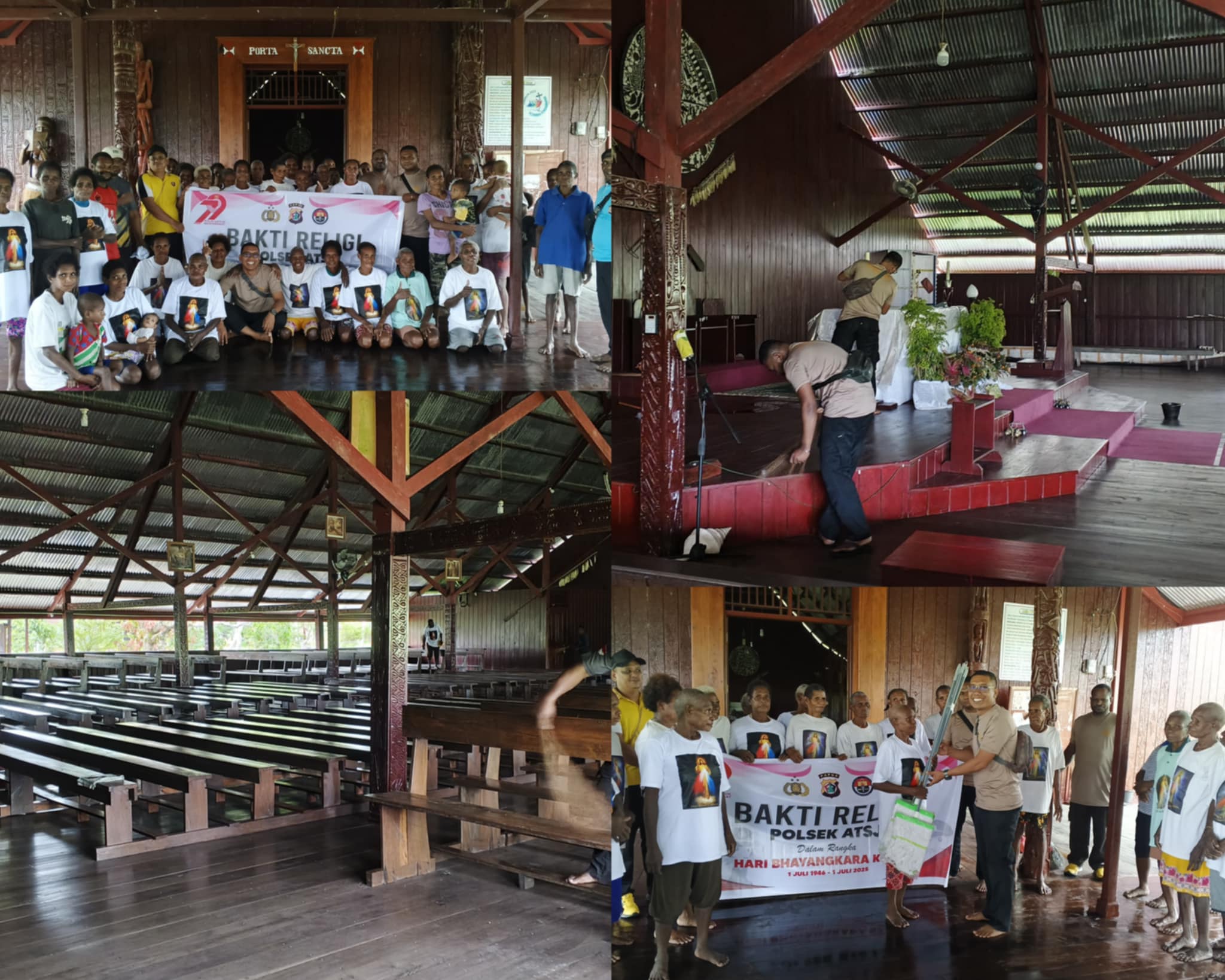 Asmat – Kapolsek Atsj IPDA I Nyoman Tunas bersama anggota laksanakan Bakti Religi Membersihkan 2 (Dua) Tempat Ibadah, Bertempat Di Distrik Atsj Sabtu (21/06/2025).
