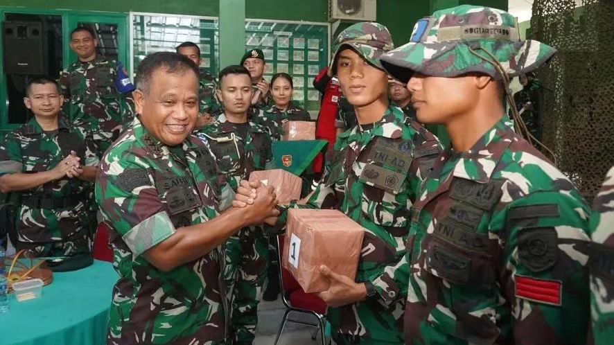 Prajurit Yonarmed 13 Kostrad, Sertu Angga Cahyo, menerima penghargaan dari Pangkostrad, Letjen TNI Muhammad Saleh Mustafa. Penghargaan ini diberikan atas prestasi Sertu Angga yang berhasil meraih peringkat pertama dalam Penataran Mountaineering seluruh jajaran Kostrad. Acara penghargaan berlangsung di Rahlat Kostrad Sangga Buana, Karawang, Jawa Barat, pada Selasa (28/05/2024).