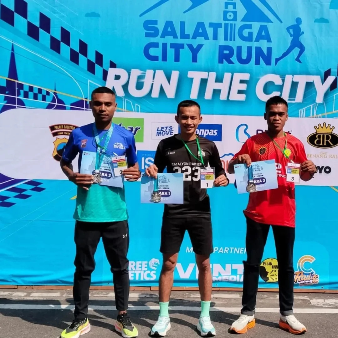 Tak hanya di Salatiga, semangat loreng juga berkibar di Bhayangkara Run 5K 2025 yang digelar di Banyumas. Kopda Agustalis Lerebulan keluar sebagai juara pertama dengan catatan waktu 16 menit 08 detik, disusul oleh rekannya Prada M. Alfun Khoir di posisi kedua dengan waktu 17 menit 30 detik.