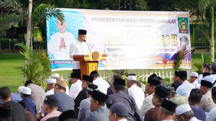 Bupati Langkat H. Syah Afandin, SH memimpin langsung pelaksanaan Shalat Idul Adha di Masjid Raya Pangkalan Brandan. Usai melaksanakan ibadah, beliau bersama panitia masjid menyaksikan penyembelihan hewan kurban, termasuk satu ekor sapi seberat 919 kilogram yang merupakan bantuan langsung dari Presiden Republik Indonesia, Prabowo Subianto.