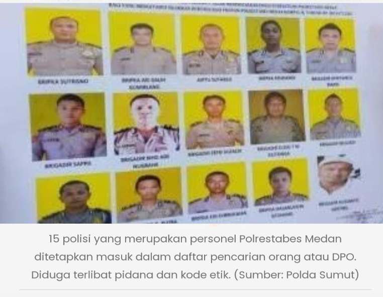 Nama-nama 15 anggota polisi tersebut telah dimasukkan dalam daftar pencarian orang (DPO), dan foto-foto mereka ditempel di papan pemberitahuan Polrestabes Medan.