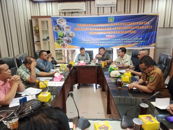 Langkat. Suaraindonesia.Online- DPRD Kabupaten Langkat mengadakan Rapat Komisi A s/d D dalam rangka Sinkronisasi Penyerapan dan Penghimpunan Aspirasi Masyarakat atas Hasil Reses Masa Sidang I Tahun Ke-I Tahun Anggaran 2025. Rapat ini bertempat di Ruang Rapat Komisi A s/d D DPRD Kabupaten Langkat dan dihadiri oleh Pimpinan serta Anggota DPRD dari masing-masing komisi bersama dengan Organisasi Perangkat Daerah (OPD) terkait.