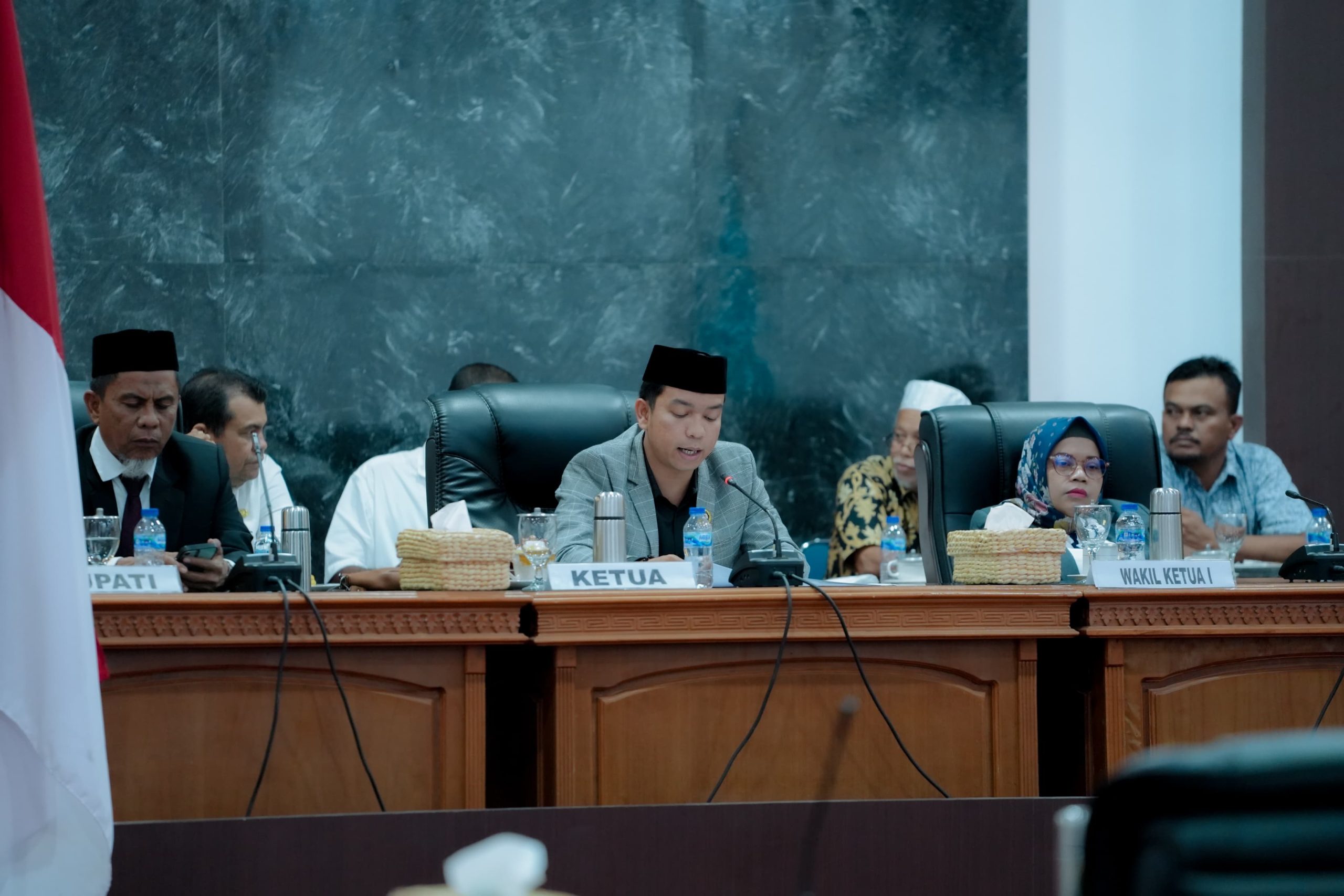 Rapat paripurna tersebut dipimpin oleh Wakil Ketua I DPRK Nagan Raya, Dedy Irmayanda, yang didampingi Wakil Ketua II, Puji Hartini. Rapat dihadiri oleh 14 dari 25 anggota Dewan dan berlangsung pada Rabu (21/8/2024) di Aula Sidang Utama Gedung DPRK Nagan Raya.