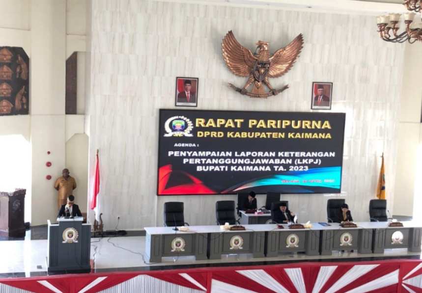 KAIMANA- Dewan Perwakilan Rakyat Daerah Kabupaten Kaimana, Selasa (2/4/2024) menggelar rapat paripurna penyampaikan Laporan Keterangan Pertanggungjawaban (LKPj) Bupati Kaimana Tahun 2023.