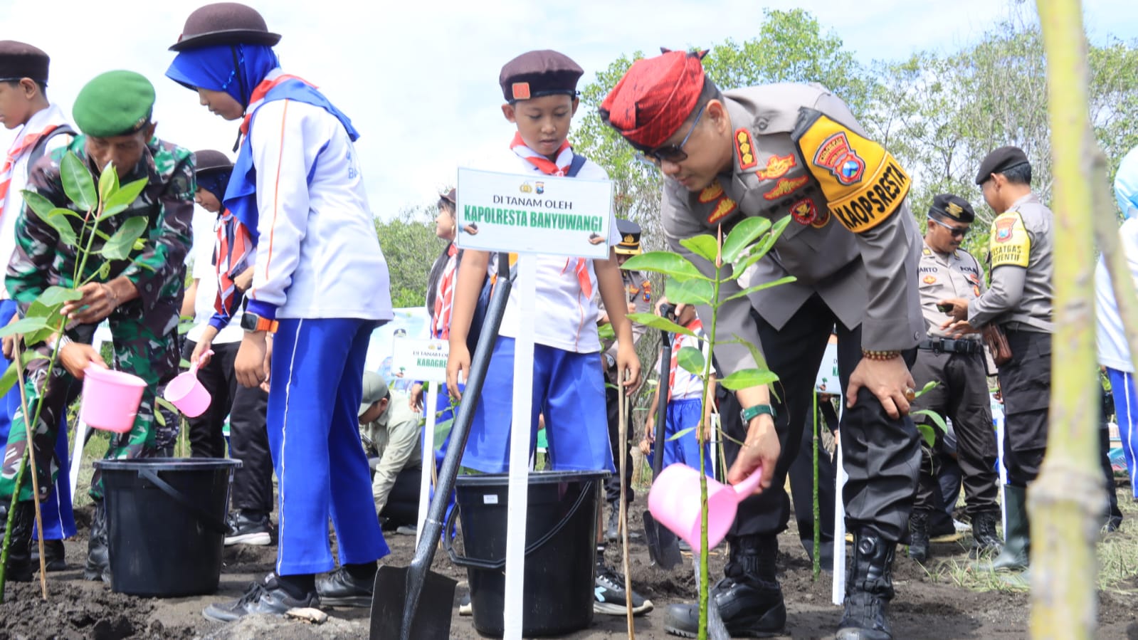 “Saya minta gerakan ini untuk dilaksanakan dengan konsisten dalam bentuk partisipasi masing-masing Polsek dalam melestarikan pohon mangrove di Banyuwangi,” ucap Kapolresta.
