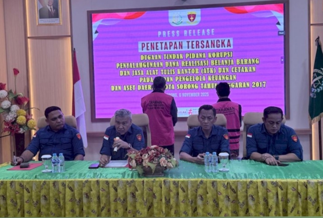 Sorong – Kejaksaan Tinggi (Kejati) Papua Barat menetapkan mantan Kepala BPKAD Kota Sorong, HJT dan Bendahara Barang BPKAD Kota Sorong, BEPM sebagai tersangka dugaan tidak pidana korupsi (Tipikor) Alat Tulis Kantor (ATK) dan barang cetakan tahun anggaran 2017 di Badan Pengelolaan Keuangan dan Aset Daerah (BPKAD) Kota Sorong.
