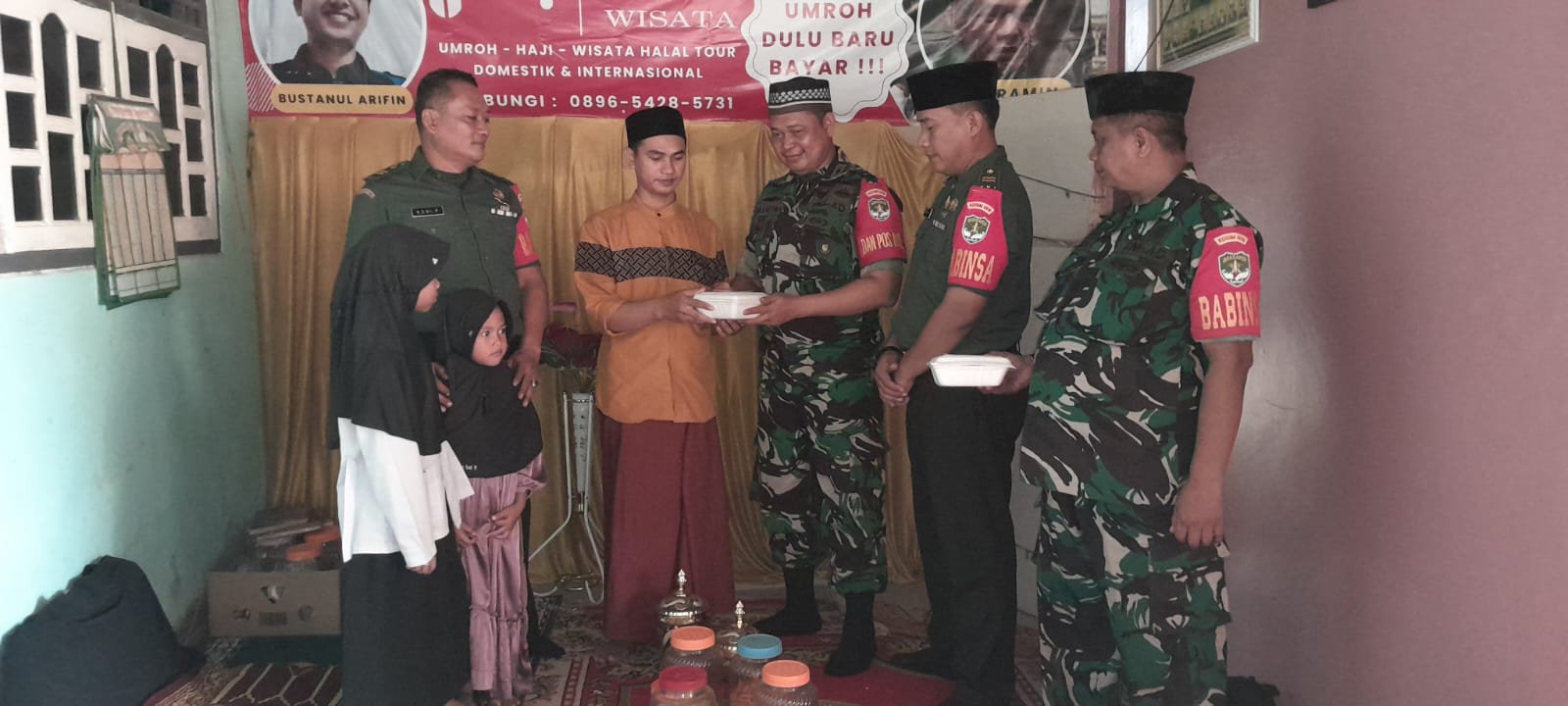 Safari Jum’at Berkah Koramil 05/Balaraja Kodim 0510/Tigaraksa di bawah Pimpinan Kapten Infantri Ali Maskuri S.E selalu Istiqomah melaksanakan kegiatan Jum’at berkah dengan membagikan makanan siap saji ke Ponpes *At Taqwa* Pimpinan Ustadz Mustanul Arifin yang beralamat di Kp Lembur Tegal RT 002/02 Desa Bunar Kecamatan Sukamulya Kabupaten Tangerang Banten,