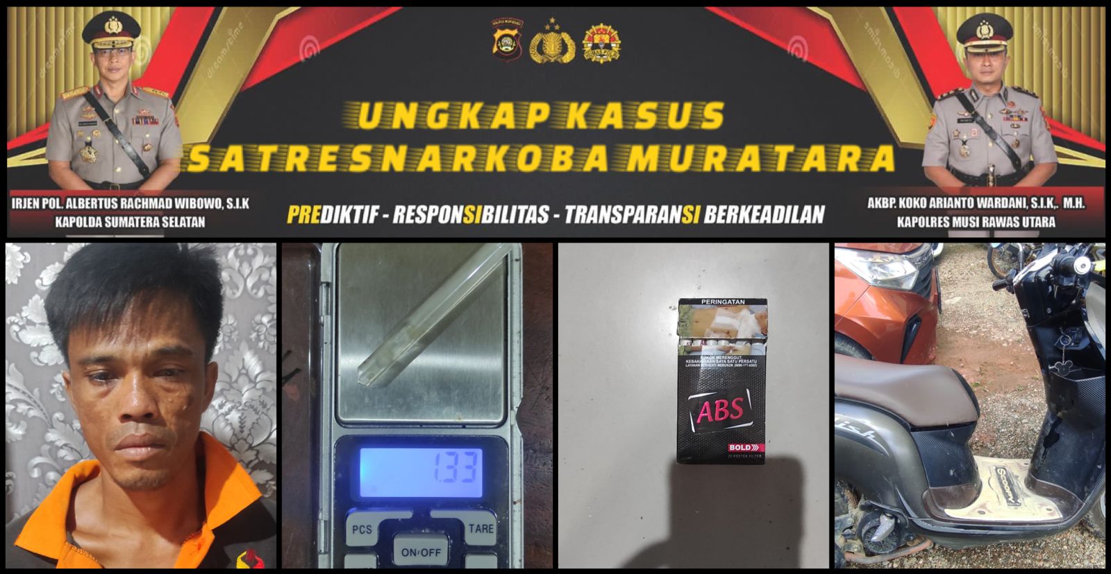 Kronologis Penangkapan Sebelumnya Personil Sat Res Narkoba Polres Muratara mendapatkan informasi dari masyarakat bahwa ada sering terjadi transaksi penyalahgunaan Narkotika di Kec Rawas Ulu, setelah mendapatkan informasi tersebut Tim Sat Res Narkoba di Pimpin Kanit IPDA Andri Firmansyah, SH, melakukan Patroli.