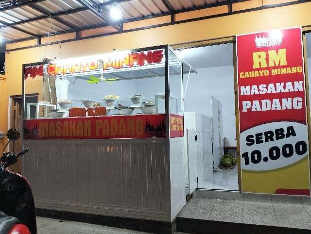 Rumah Makan Masakan Padang Cahayo Minang serba 10ribu berlokasi di Jl. MH Thamrin, Pengantigan, Kecamatan Banyuwangi, yang merupakan salah satu warung masakan padang paling cocok dengan harga yang tidak bakalan membikin jebol kantong kita. Lauknya juga komplit, mulai dari ayam goreng, dendeng paru, ikan kembung, rendang, ayam pop, gulai ayam dan sebagainya.