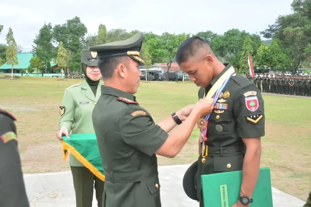 Bone — Bintara dari Brigif 3 Kostrad kembali mengukir prestasi gemilang. Serda Muhammad Syukri, anggota Denma Brigif 3/TBS, dinobatkan sebagai lulusan terbaik Pendidikan Pembentukan Bintara (Diktukba) Reguler LXII Tahun Anggaran 2025 di Dodiklatpur Bancee, Kabupaten Bone. Pengalungan pangkat efektif dilakukan langsung oleh Wadanrindam XIV/Hasanuddin Kolonel Inf Dannie Hendra dalam upacara penutupan, Senin (23/6/2025).