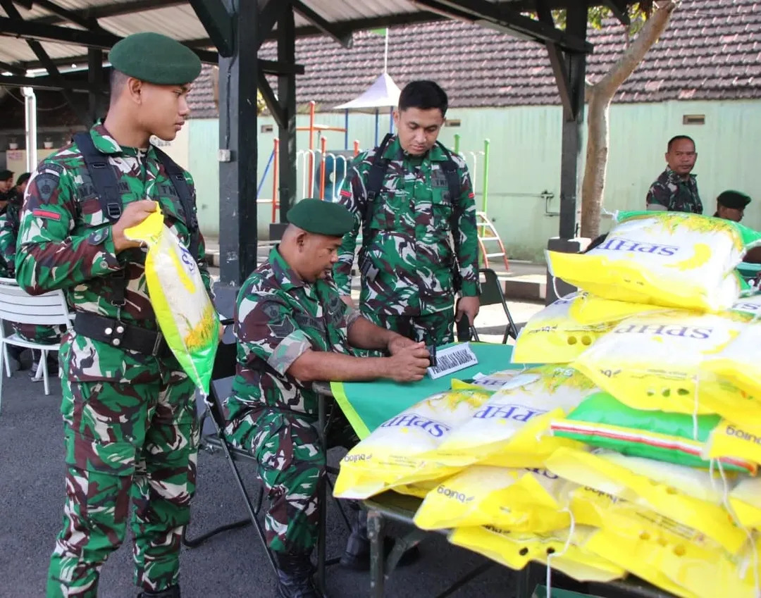 YBA2/MWJ_Menindaklanjuti perintah Komando Atas dalam upaya menekan kenaikan harga beras di pasaran guna menyukseskan program dan mendukung pemerintah mewujudkan pangan murah, Batalyon Bekang 2 Kostrad gelar Bazar beras murah pemerintah, bertempat di Garasi Kompi Bekang A Yonbekang 2 Kostrad, Kota Malang, Jawa Timur, Senin (04/08/2025).
