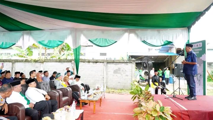 Langkat. Suaraindonesia.online- Bupati Langkat, H. Syah Afandin, SH menegaskan komitmennya untuk mendorong hadirnya balai ternak hingga ke tingkat kecamatan sebagai upaya membangkitkan perekonomian masyarakat. Hal itu ia sampaikan saat launching Balai Ternak Sri Langkat Berkah Mulia, yang digelar bersama Ketua Baznas RI Prof. DR. K.H. Noor Achmad, MA dan Ketua Baznas Sumut Prof. Dr. H. Mohammad Hatta di Sekolah YPP Prof. Dr. H. Mohd Hatta, Kecamatan Stabat, Jumat (12/9/2025).