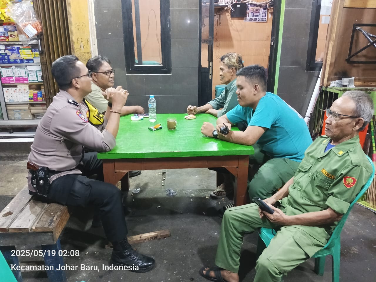 Patroli ini dilakukan bersama unsur Forum Kewaspadaan Dini Masyarakat (FKDM) Kecamatan Johar Baru, sebagai bentuk sinergi antara kepolisian dan masyarakat dalam menjaga keamanan wilayah. Dalam kegiatan tersebut, Aipda Ikhwan menyampaikan imbauan kamtibmas dan berdialog langsung dengan warga yang berjaga di pos kamling, termasuk Pak Ewo dan Pak Dodi.