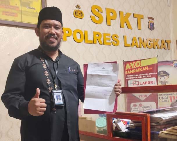Laporan tersebut pada Surat Tanda Penerimaan Laporan Nomor : STTLP/B/61/I/2025/SPKT/POLRES LANGKAT/POLDA SUMATRA UTARA terkait Dugaan pelanggaran Tindak Pidana dalam bidang Informasi dan Transaksi Elektronik sebagai mana di maksud Pasal 27 ayat 3 Jo.Pasal 45 ayat 1 Undang-undang RI Nomor 11 tahun 2008 sebagaimana yang telah diubah dalam Undang-undang RI Nomor 19 tahun 2016 Informasi dan Transaksi Elektronik (UU ITE ) “Tentang Penghinaan dan Pencemaran nama baik”. Laporan diterima oleh IPDA Zen D.Sembiring Kanit I KA.SPKT Resor Langkat. ucap Mas’ud.SH.MH.CPM.CPCLE.CPL.Adv Kuasa Hukum Pemerintah Desa Perlis yang juga sebagai Kuasa Hukum Awaluddin Cs Kepala Dusun Desa Perlis Kecamatan Brandan Barat Kabupaten Langkat Kepada Wartawan (31/01/2025) saat ditemui di Polres Langkat .