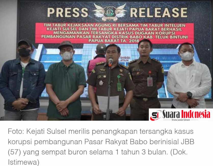 Buronan yang diamankan yaitu seorang lelaki inisial JBB (umur 57 tahun / Kontraktor Pekerjaan) yang melibatkan kasus dugaan Perkara Tindak Pidana Korupsi kegiatan Pembangunan Pasar Rakyat Babo Distrik Babo Kab.Teluk Bintuni pada Dinas Perdagangan Perindustrian Koperasi dan UKM Kabupaten Teluk Bintuni Tahun Anggaran 2018 dengan indikasi pekerjaan tersebut belum selesai dikerjakan ( Mangkrak ). Akibat perbuatan Tersangka JBB diduga telah merugikan keuangan negara sebesar Rp. 3.035.000.000,- (tiga miliar tiga puluh lima juta rupiah ) berdasarkan Laporan Hasil Audit Penghitungan Kerugian Keuangan Negara BPKP Provinsi Papua Barat .