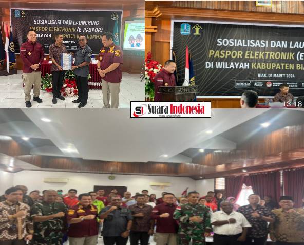 BIAK – Kantor Imigrasi kelas II TPI Biak mulai membuka layanan E-Paspor pada Maret 2024. Hal ini ditandai dengan dilaksanakannya kegiatan Sosialisasi dan Launching E-Paspor di wilayah Kab.Biak Numfor yang dilaksanakan di Aula Sasana Krida Pemda Kab.Biak Numfor dan dihadiri oleh Wakil Bupati Kab.Biak Numfor, Calvin Mansnembra, Kepala Kantor Wilayah Kementerian Hukum dan HAM Papua, Anthonius M.Ayorbaba, dan Kepala Divisi Keimigrasian Papua, Ganda Samosir. Jum’at (01/03).