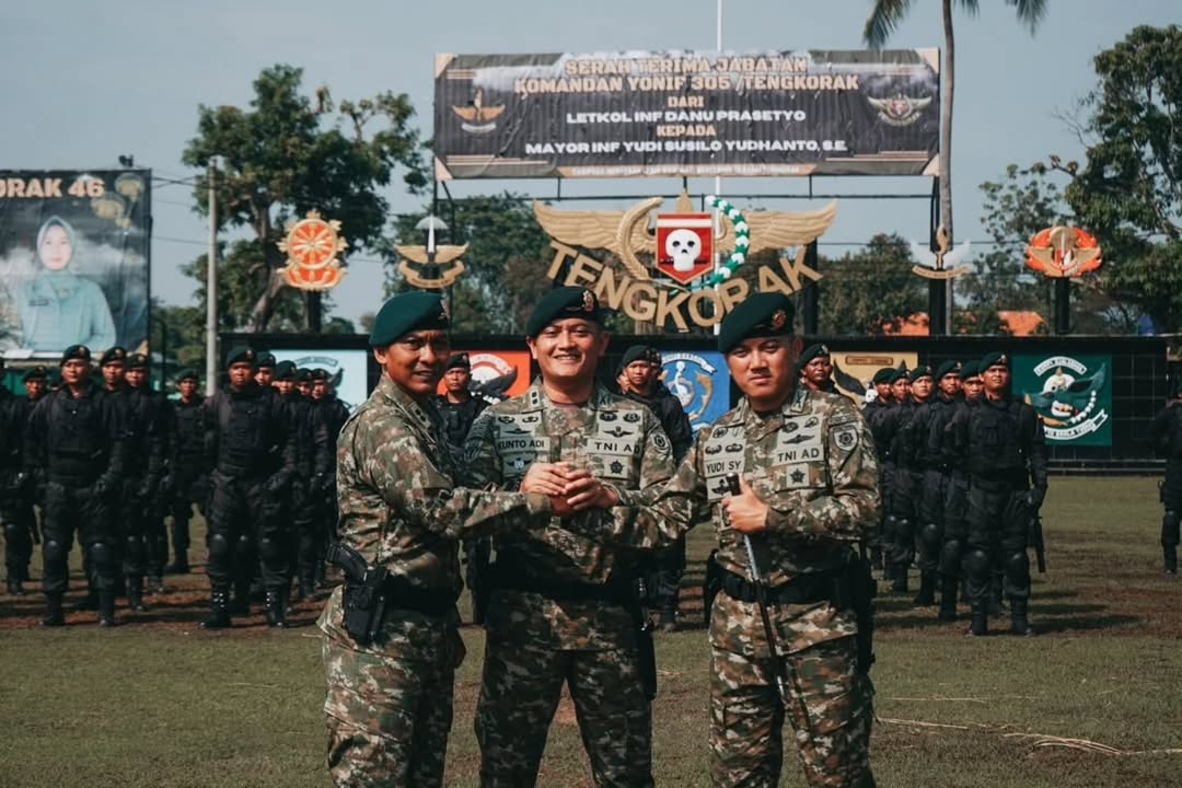 Karawang – Suasana haru bercampur bangga mewarnai Lapangan Sadelor Yonif Para Raider 305/Tengkorak saat prosesi serah terima jabatan Komandan Batalyon berlangsung dengan khidmat. Tongkat estafet kepemimpinan satuan elit Divisi Infanteri 1/Kostrad ini resmi berpindah dari Letnan Kolonel Infanteri Danu Prasetyo kepada Mayor Infanteri Yudi Susilo Yudhanto, S.E., menandai babak baru perjalanan panjang satuan kebanggaan “Tengkorak”. Senin (7/7/2025).