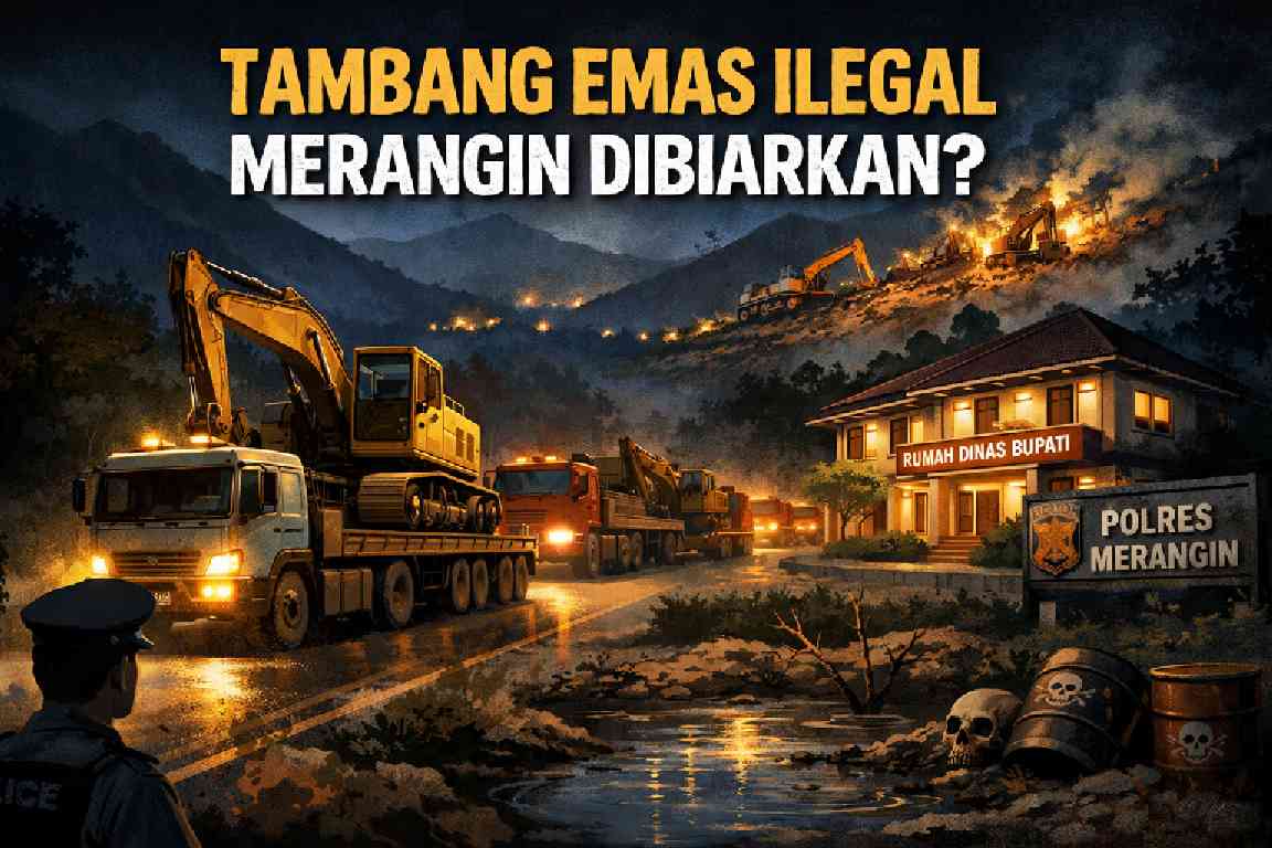 Merangin Jambi — Aktivitas pertambangan emas di Kabupaten Merangin kembali menuai sorotan serius. Sejumlah warga mempertanyakan legalitas operasi tambang yang diduga terus berjalan tanpa hambatan, bahkan diduga secara terang-terangan di hadapan aparat dan pejabat daerah.