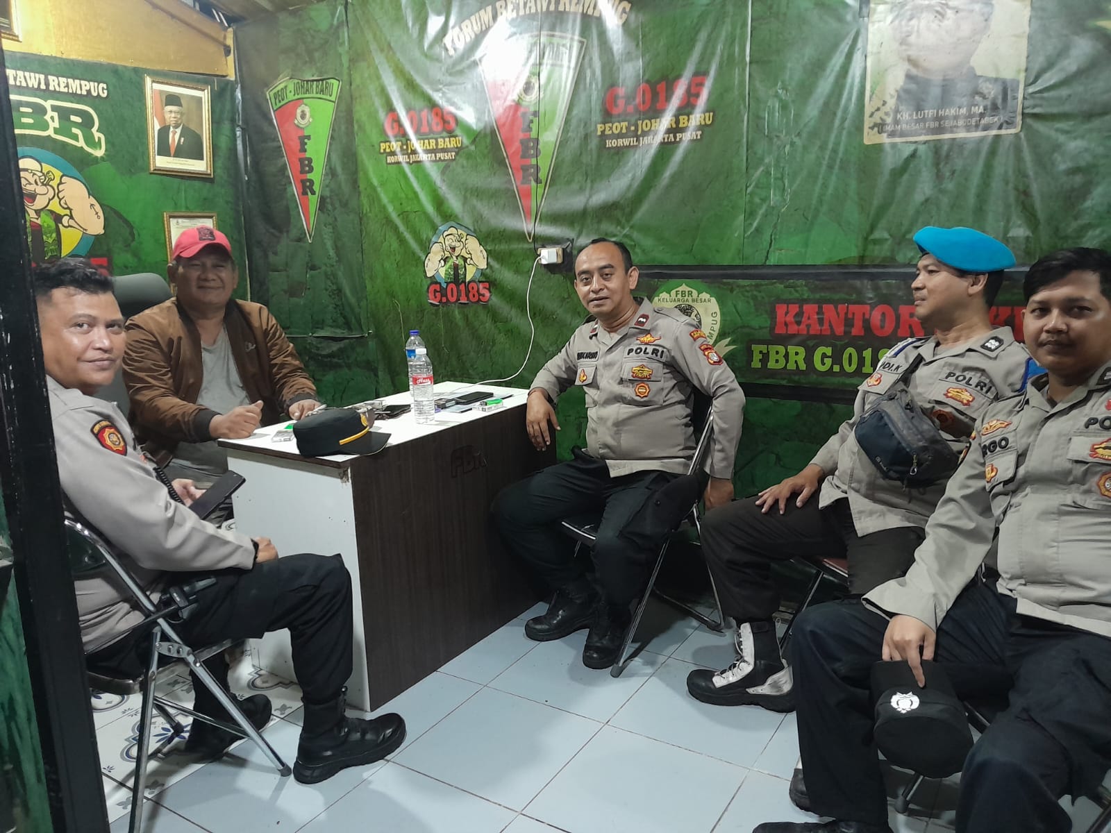Selanjutnya kunjungan ke Pos FBR bertemu dengan Endang Bray selaku ketua FBR Johar Baru bersama anggotanya untuk memberikan himbauan dan cooling system terkait Kamtibmas mengajak bersama-sama ikut serta bersama-sama menjaga wilayah agar tetap aman dan kondusif.