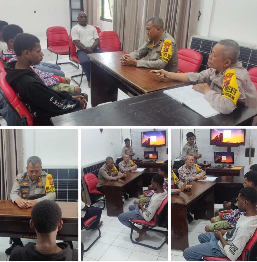 Agats – Wakapolres Asmat, Kompol Sutardi, S.H., M.H., memberi pembinaan kepada para pelajar yang terlibat dalam penyalahgunaan minuman keras (miras) di ruang Video Conference (Vicon) Polres Asmat, Rabu (11/09/2024).