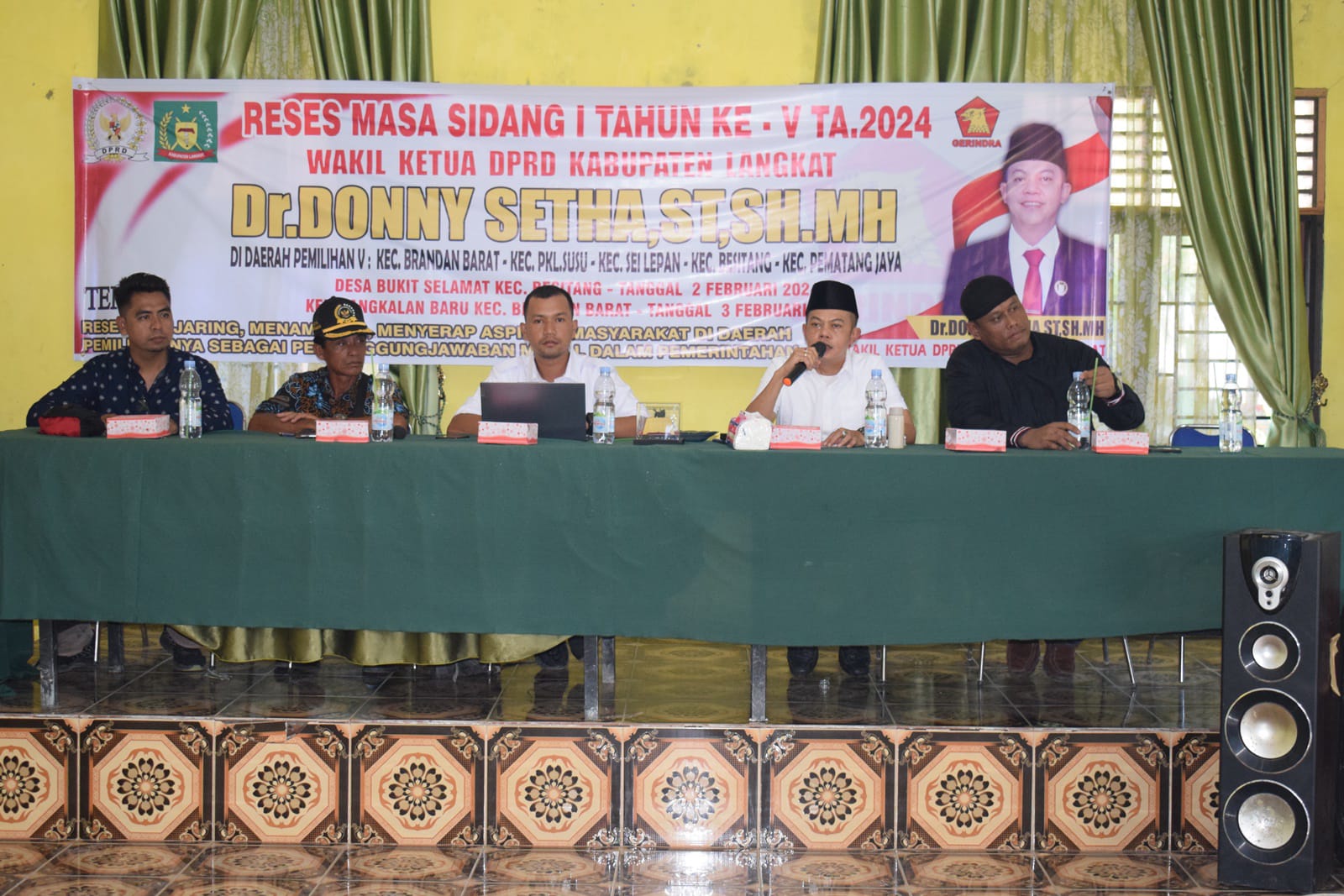 Langkat,- Wakil Ketua DPRD Kabupaten Langkat, Dr. Donny Setha, ST. SH. MH lakukan reses masa sidang I, tahun ke V, tahun anggaran 2024 ke Desa Bukit Selamat Kecamatan Besitang untuk menampung aspirasi masyarakat di daerah pemilihannya, Jum’at (2/2/2024).