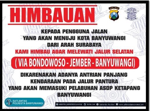 Kapolresta Banyuwangi Kombes Pol DeddynFoury Millewa melalui Kasat Lantas Kompol Randy Asdar berharap imbauan itu bisa mengurangi antrean yang sedang terjadi di sepanjang Jalur Pantura, yang mengular hingga patung Gandrung Watudodol di kawasan Bangsring