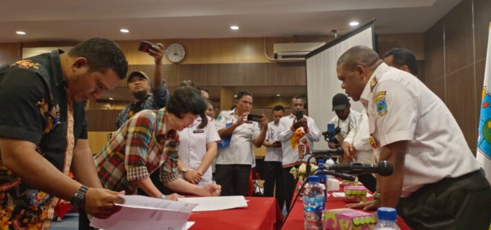 Manokwari Papua Barat- Pemerintah Kabupaten Manokwari resmi melaunching Pembayaran Ganti rugi Kepada Warga Terdampak Pembangunan Pasar Sanggeng dan Ruang Terbuka Publik, Kabupaten Manokwari di Hotel Valdos Ruang Rapat Minyambow, Jl. Trikora Wosi